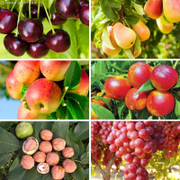 В состав комплекта входят: Черешня Ипуть, Груша Дюшес/Летняя, Яблоня Женева/Летняя, Орех Грецкий Крупноплодны, Нектарин Пижон и Виноград Виктория.