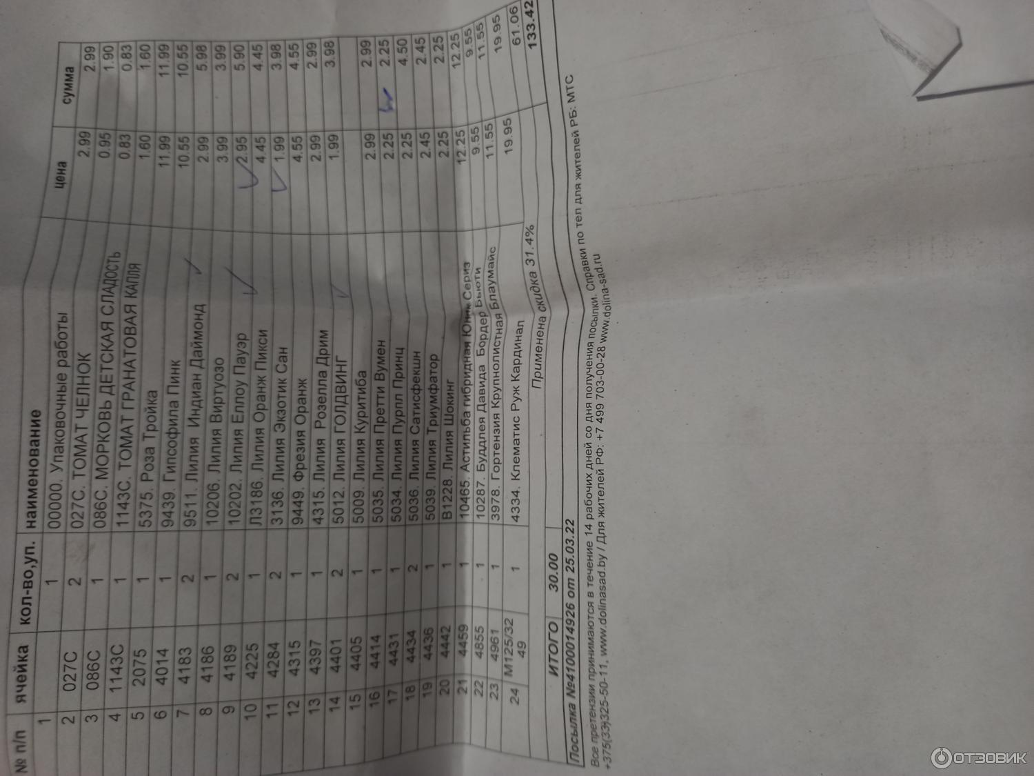 Заказ номер 57008 сделала без проблем, оператор перезвонил и еще раз уточнил все нюансы, посылка пришла быстро, все в целостности и сохранности, с приятным бонусом в виде луковиц цветов внутри.
